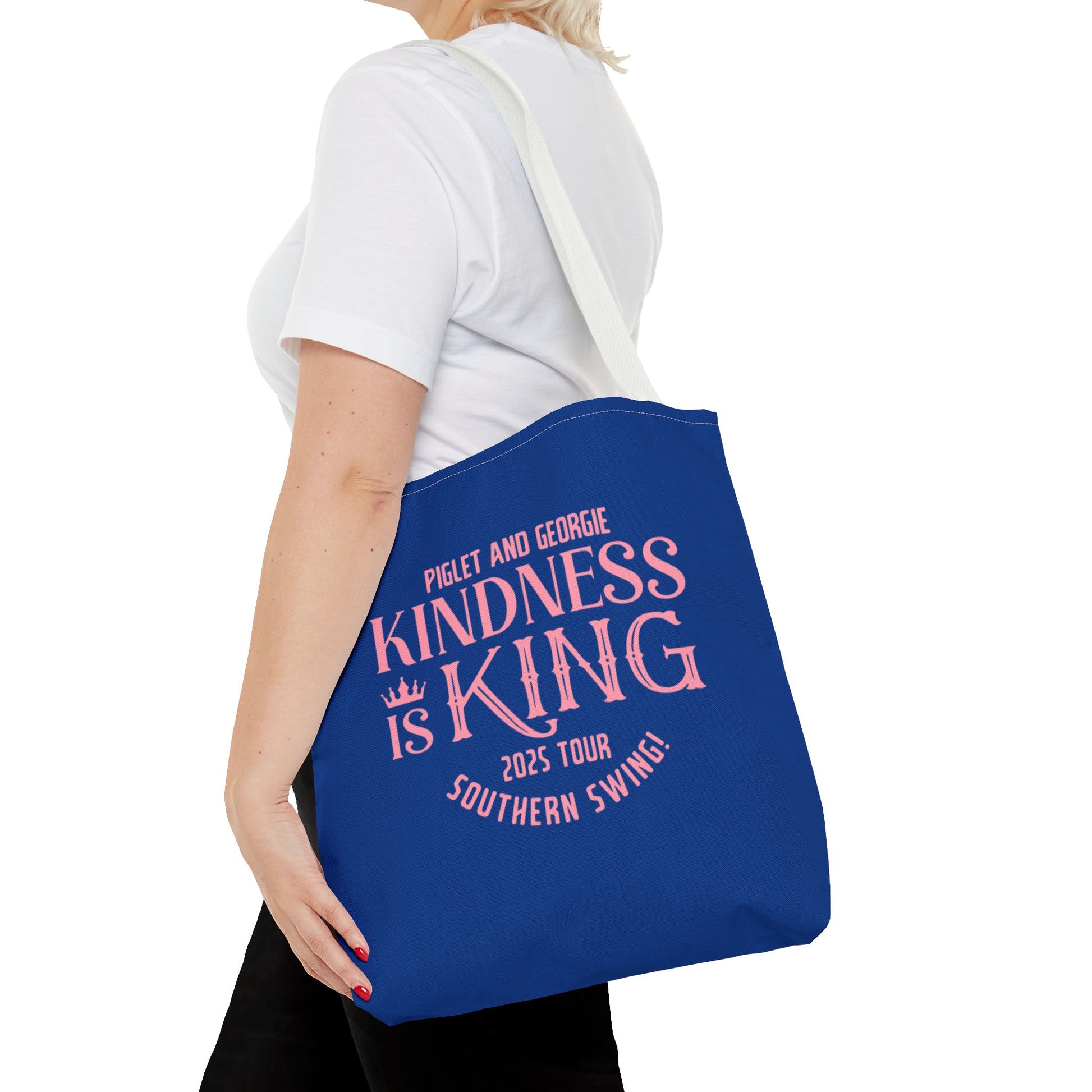 Kindness is King Southern Swing/Piglet Mindset Retro Tote Bag- Inspirational Blue Tote for Piglet Fans in the South!
