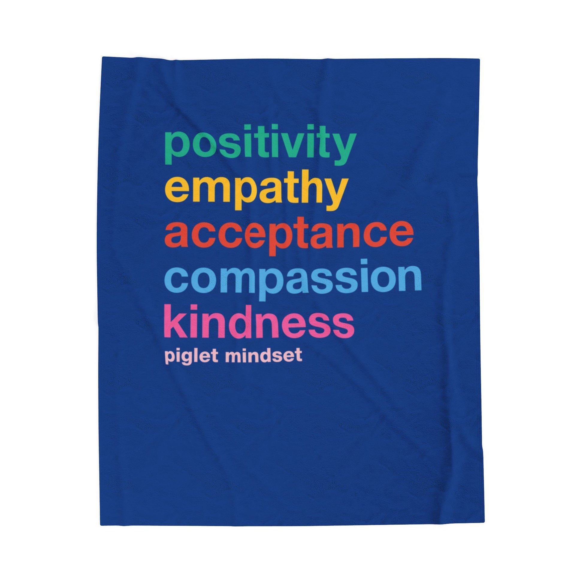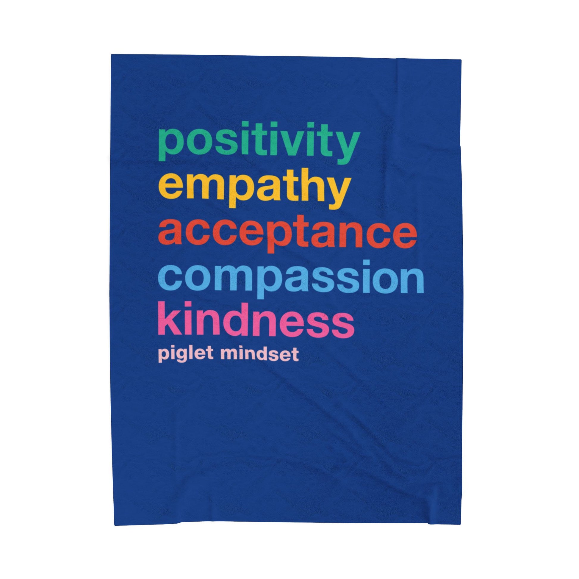 Wrap yourself in comfort and style with this cozy Velveteen Plush Blanket reminding us to have a Piglet Mindset- to be positive, empathetic, compassionate, and kind while sharing a snugle. The soft, medium-weight fabric creates a warm and inviting atmosphere, perfect for cuddling up on chilly evenings. Featuring vibrant prints on one side, it adds a splash of color to your living space, making it an ideal companion for movie nights or reading sessions. This blanket is perfect for dog lovers and pet owners who want to showcase their love for furry friends. It makes a thoughtful gift for birthdays, holidays, or any special occasion, ensuring your loved ones stay warm and stylish.