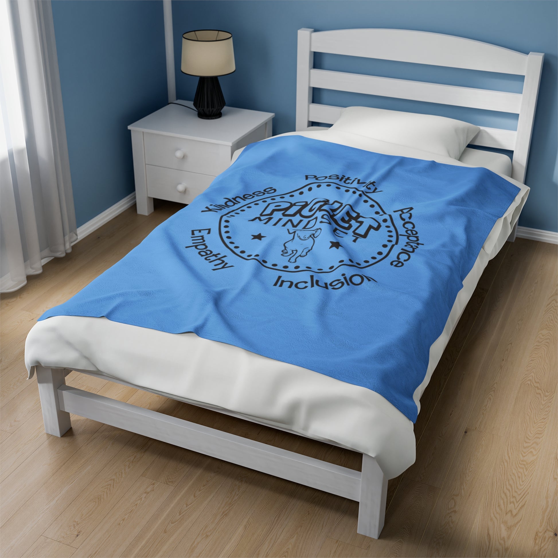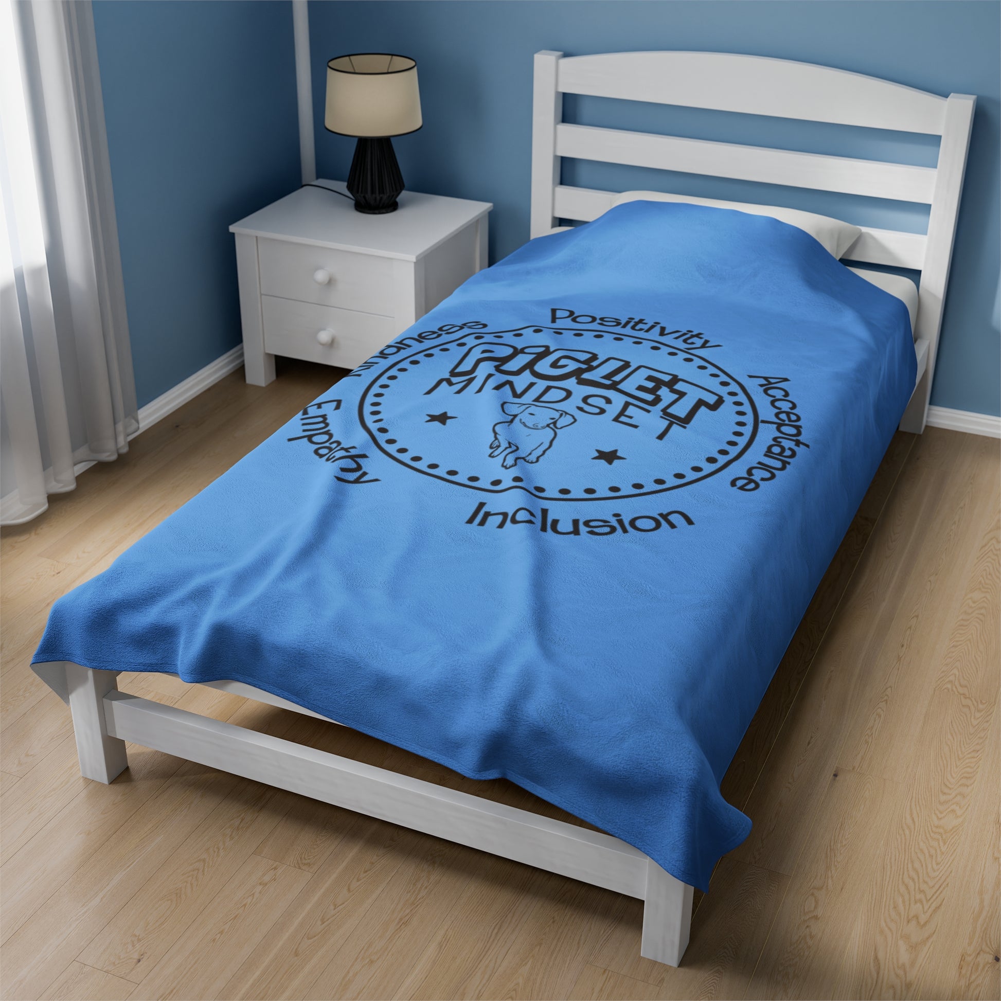 Piglet Mindset Retro Blue Velveteen Plush Blanket